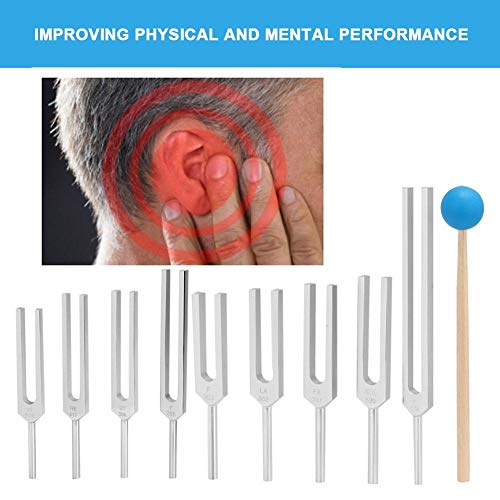 Specification: 9-delige stemvorkset, 174/285/396/417/528/639/741/852/963HZ stemvorkset met 1pc hamer, geschikt voor geluidstesten