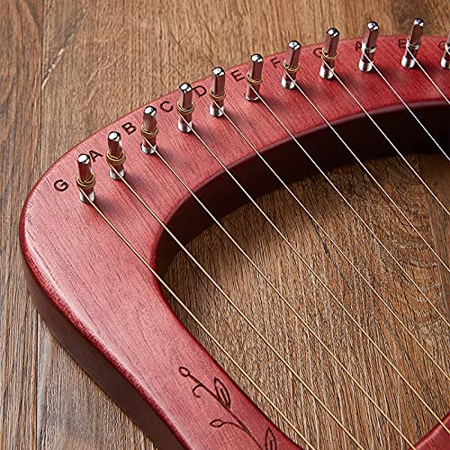 -De Lire harp is gemaakt van hoogwaardig mahonie materiaal, wat zorgt voor een helder, warm en melodieus geluid. De toonhoogte noten zijn gemarkeerd op de top van de Lire harp, geschikt voor beginners of gevorderden.