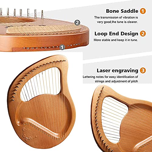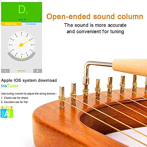 Kwaliteit mahoniehout gemaakt: deze lierharp is gemaakt van mahonie, een hout met een hoge hardheid en dichtheid. Het is sterk genoeg om het gestemd te houden en te voorkomen dat de snaar in het hout wordt geperst. Deze lierharp kan een warme klank maken met een aangename toon.