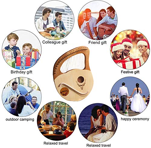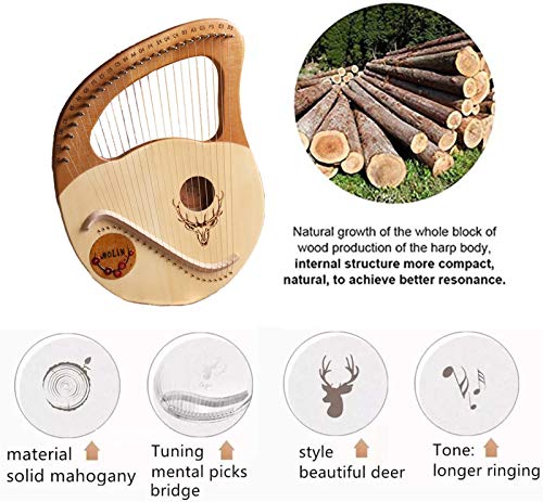 🌈 Kwaliteit Mahoniehout gemaakt: deze Lyre Harp gesneden uit een stuk mahonie, dat een hoog hardheid en dichtheid hout is.Het is sterk genoeg om het af te houden en de snaar in het hout in het hout te vermijden.Deze Lyre Harp kan warm geluid maken met een aangename toon.