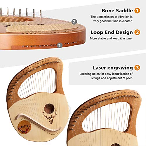 21 String Lyre Harp Lye Harp Sidwood Mahonie met draagtas, Chinese harp heptachord voor beginners muziekliefhebbers…