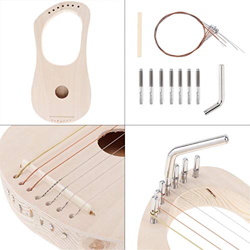 Specification: 7-String Lyre Harp, Oude Stijl Lyres Hout String Instrument DIY Kit Lyre Harp Maken Materiaal Kit Bass Hout met String Post String Zadel Stemsleutel voor Kinderen Kid Gift